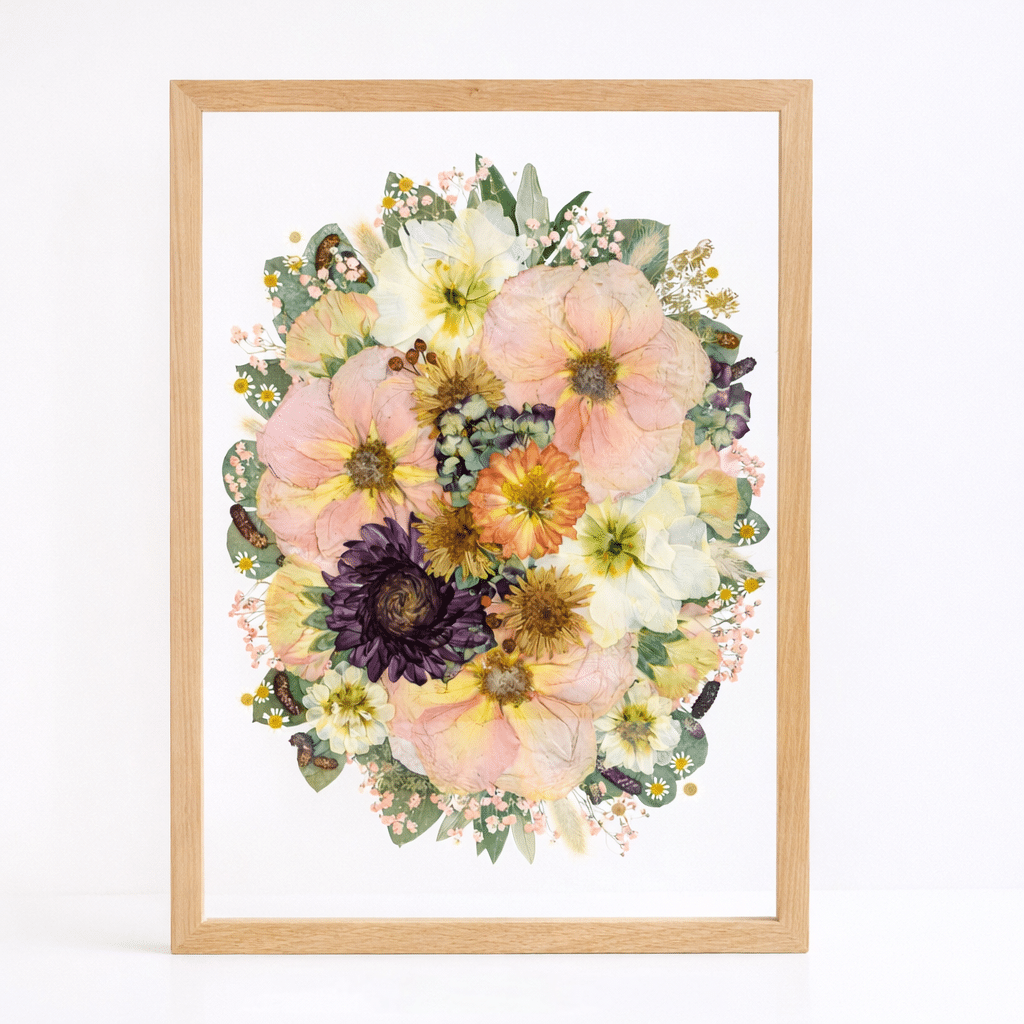 Unsere Größe A3 ist der perfekte Allrounder elegant, harmonisch und voller Ausdruckskraft. Hier kommt dein Brautstrauß wunderschön zur Geltung, ohne zu überladen zu wirken ein stilvolles Kunstwerk, das Erinnerungen zeitlos festhält. Ein Highlight für alle, die Schönheit und Emotion in perfekter Balance lieben. 💐